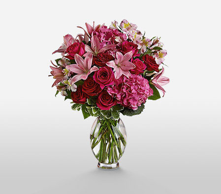 Carnations, are yours to send in this lovely bouquet of pink and white blooms. These flowers will dazzle her with the extravagance of your love and she will know she means the world to you. (Vase not included)